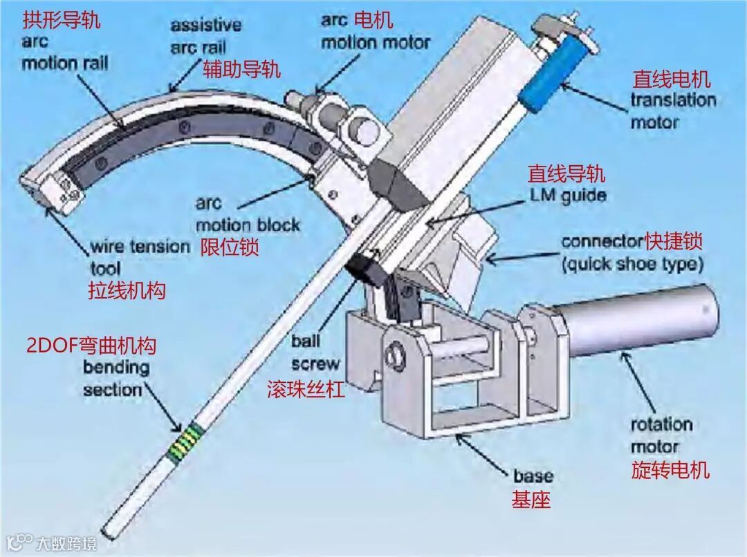 但是,由于内窥镜重量较大,难以精细操作,直接使用内窥镜对机械手进行控制难度较大,需要开发连续机器人(Continuum Robot)机械手。这样就可以用内窥镜将连续机器人送至病灶附近,由连续机器人的伸缩和弯曲带动机械手在体内的运动,完成手术动作。连续机器人具备一定柔性和优异的灵活性,可以对体内器官进行有效避让,扩大机械手在体内能触及的范围。