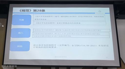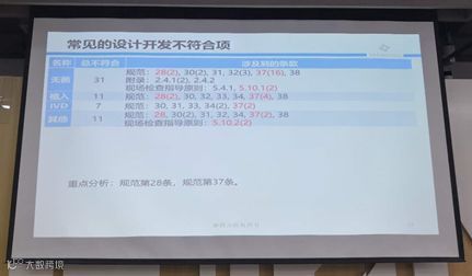根据飞检结果分析常见的设计开发具体不符合项如下图,大家看以参阅相应的规范了解相关内容。陈曦女士给我们重点分析了规范第28条和规范37条不符合的事项及案例。