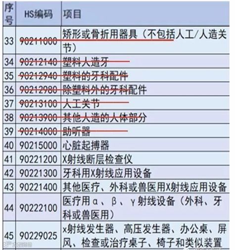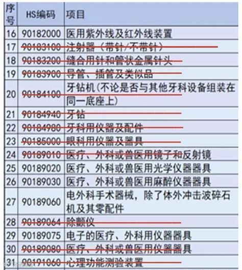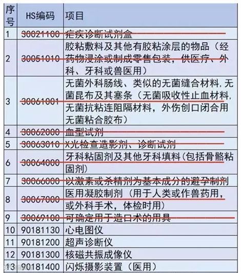 6月15日公布的医疗器械品类加征清单(红色划线为本次更新清单后删除的产品条目)