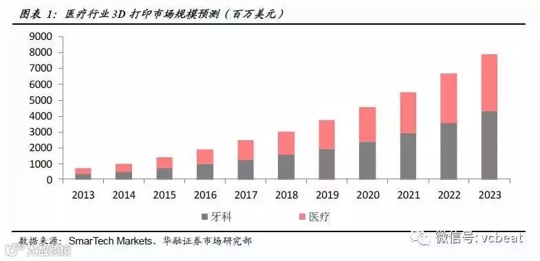 根据SmarTech《牙科3D打印2015:一个十年的机会预测与分析》中的预测,3D打印技术在牙科领域的市场规模到2016年会达到20亿美元,2020年销售规模可上升至31亿美元。