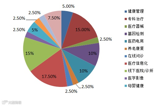 在细分领域上,医疗创业呈现“整体分散、相对集中”的特点,专科医疗、线下医院及医疗信息化占比均在15%以上,这也印证了医疗行业链条长、痛点多的特点。但由于高壁垒性和相对封闭的行业属性,大部分创业者还是选择以一个点切入,在一个领域做稳、做精。