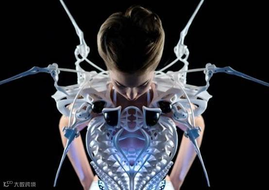 她的另一个设计是蜘蛛裙,它的主体部分采用了一款带有传感器,以及机动化“肢体”的3D打印骨架。