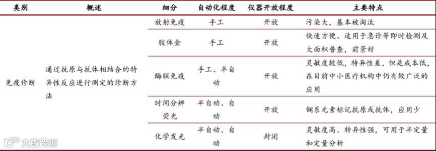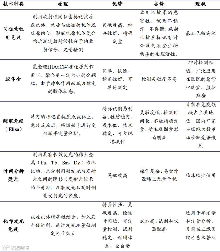 不同免疫诊断方法比较表