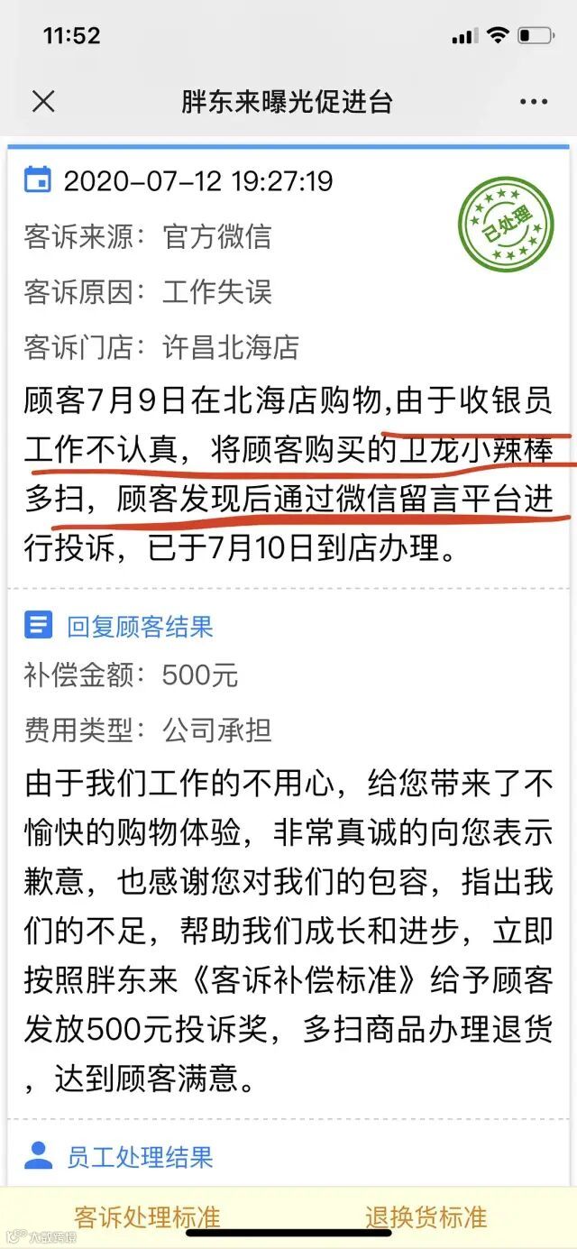 网友看了一下近一个礼拜的客户投诉,甭管三七二十一,一投一个准,一投就给500补贴。