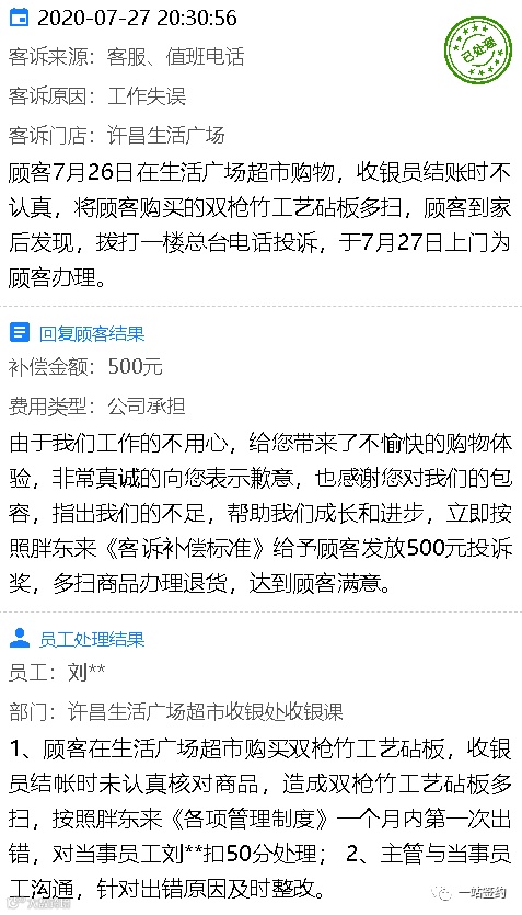 最最离谱的是,看到一个顾客,是员工少收了17块钱,顾客反映到总台,立马赔500给顾客。