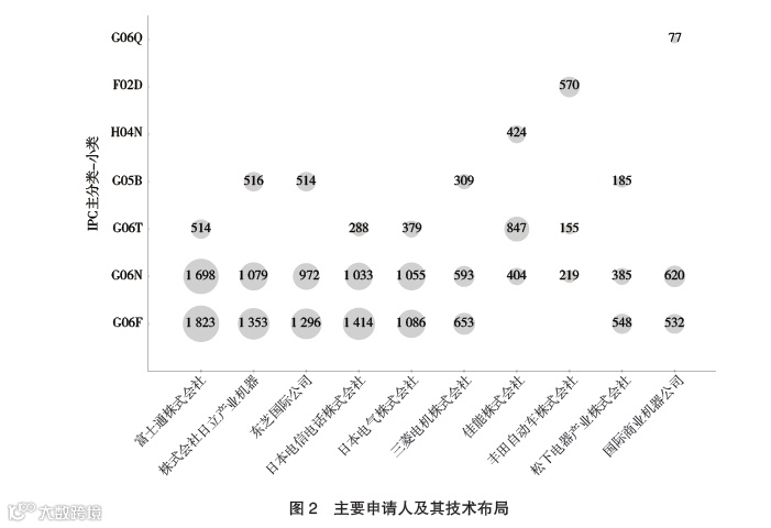 如图2所示,富士通株式会社、株式会社日立产业机器、东芝国际公司等排名前10位的主要申请人不仅在申请量上表现突出,而且在技术产出和市场分布上也具有集中和广泛的特点。在排名前10位的主要申请人中,国际商业机器公司(IBM)是唯一的外国申请人。