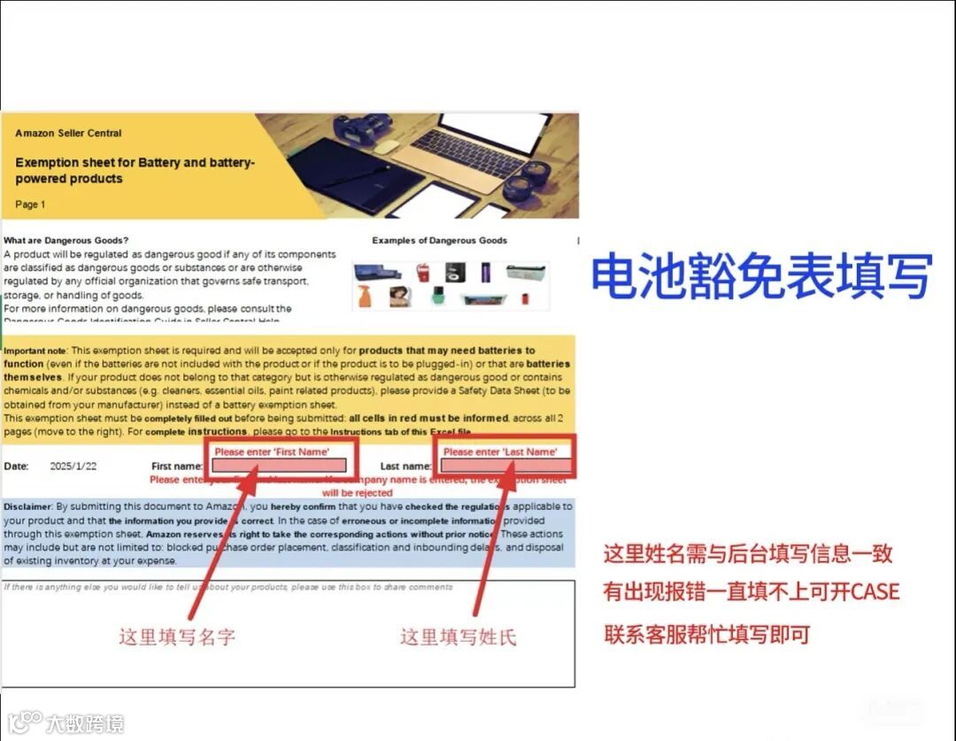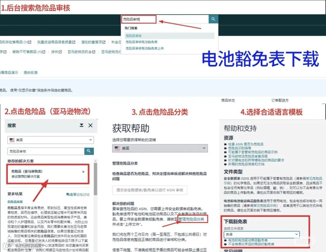 ④ 豁免表(官方模板)——后台“危险品审核”入口下载,别用百度来的旧表。
