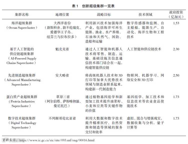 各个超级集群的地理位置、战略目标、技术领域及政府投资等情况详见表1。