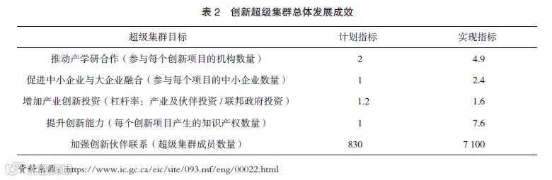 截至目前,五大超级集群的成员已由启动时的近700个发展到7100个,组织实施创新项目480个,项目总投资21.6亿加元,其中12.8亿加元来自企业和私营部门,项目合作伙伴超过1840家,其中75%以上为中小企业,创造了850多项知识产权(专利申请、版权、商标和商业秘密)和数千个就业机会。