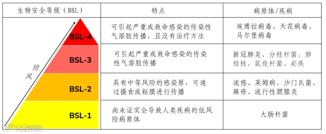 图1 生物安全等级及其特点和代表疾病