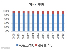 图4 中美KTI增加值中制造行业和服务行业历年占比