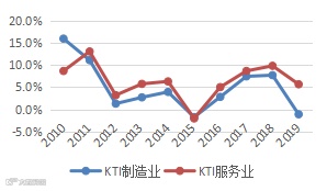 全球KTI制造业和服务业历年来的年均增长率