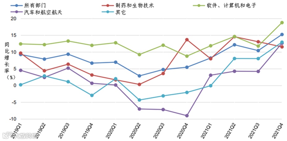 图4 OECD范围内各行业领域研发同比增长率