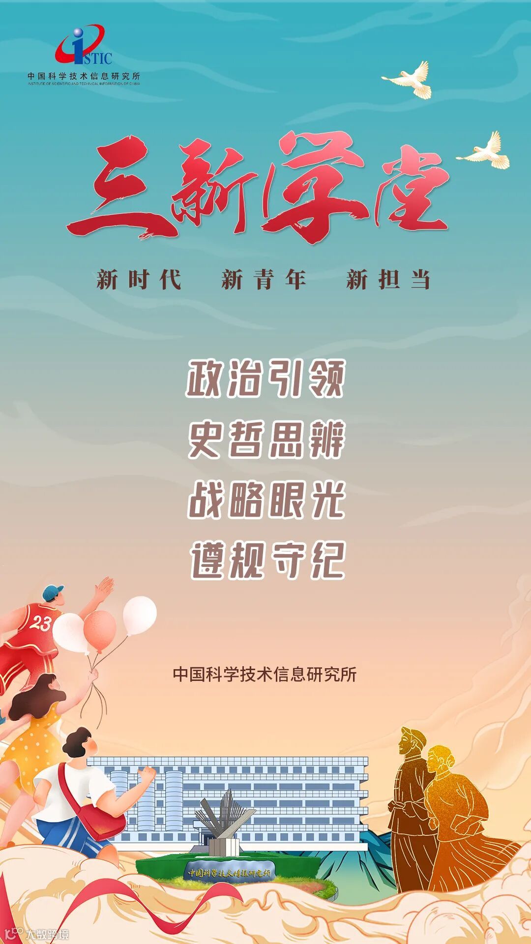 “三教九流皆有,新知旧识皆收,学无止境尽头,堂堂如饮绸缪,好事再上琼楼。”2022年1月19日,中信所研究生部党支部举办“三新学堂”(“新时代、新青年、新担当”)系列讲学活动第四讲暨支部联学活动,特邀科技部二级研究员房汉廷同志以“大时间尺度看‘新时代、新青年、新担当’的内涵与外延”为题作专题讲座,巧用“三”、“三”、“四”的一组数字为青年破解时代命题。本次活动邀请刘琦岩副所长现场主持。