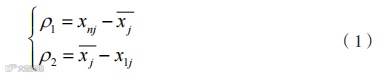 其中,ρ1表示最大指标值至中位数的距离,ρ2表示最小指标值至中位数的距离,有ρ1, ρ2 ∈[0, xnj-x1j),xnj-x1j为指标最大值与最小值的差值。
