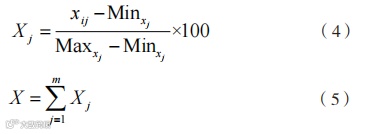 将消除极端值的指标数据采用极值法进行标准化处理,得到企业各创新指标得分,并将企业各指标得分进行加总,计算得到企业创新积分。公式如下: