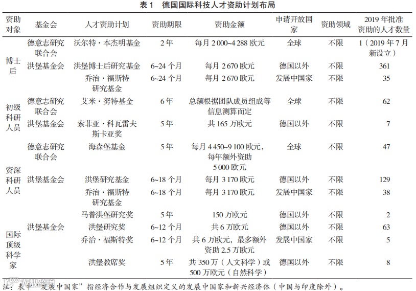 德国国际科技人才资助计划布局