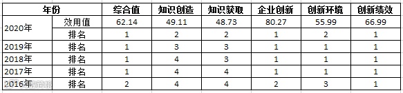 中,广东在“企业创新”“创新绩效”两项排名第一,“知识创造”“知识获取”“创新环境”三项排名第二。