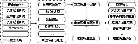 “数据孤岛”在当前的企业里仍普遍存在,集成共享模式旨在将电力企业各部门的数据(如智能电表(AMI)数据、SG186营销数据、95598客服数据、MDS生产调度数据、电能服务管理数据等)集成至电力大数据中心,各部门可根据其需求调用相应的数据集。以按需供应的模式,统一各单位各口径数据规范,打破所涉及的行业数据壁垒,充分实现业务链条间的数据共享。该模式典型案例是国家电网公司在有源配电网电能质量检测和评估上的应用,已经发挥了重要的作用,如图4所示。