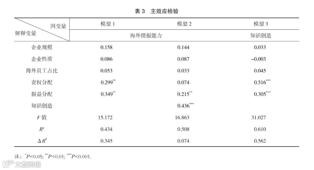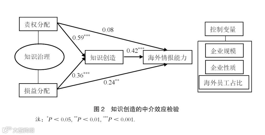 (2)知识创造对企业海外情报能力具有显著影响作用,即跨国企业内部的知识创造有助于海外情报能力的提升。