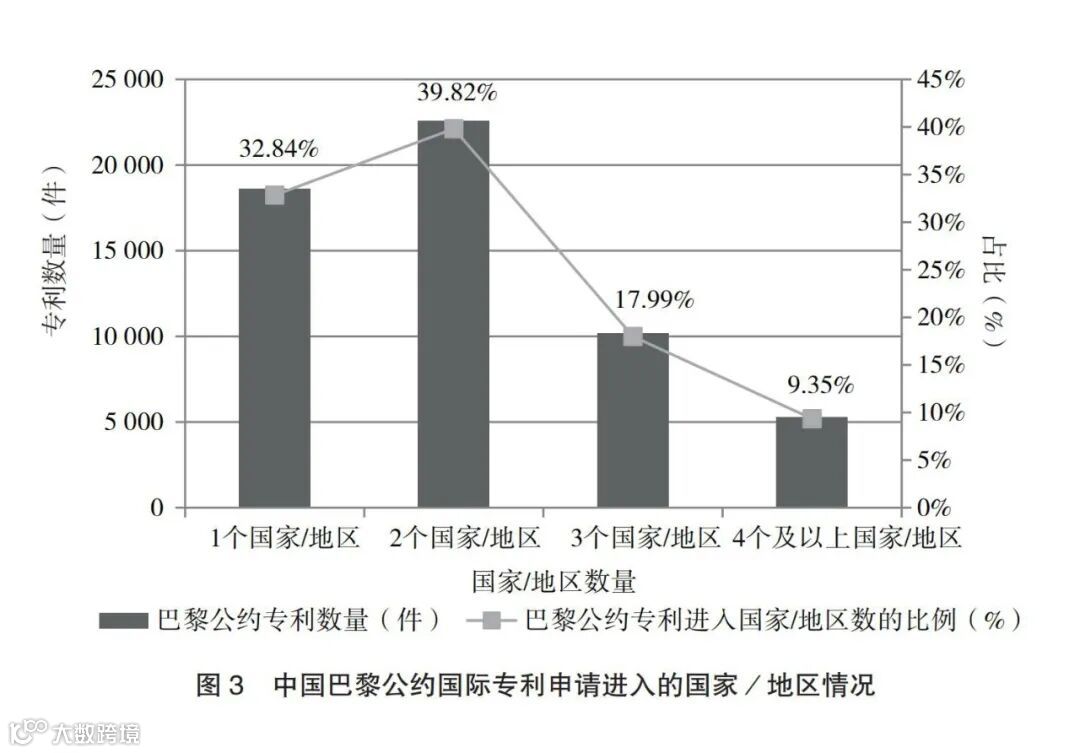 不过,从我们的研究结果看,巴黎公约专利目前更符合该途径对于目标国家/地区数量的定位,而且超过93%的授权专利被中国大陆以外的国家/地区授权。而PCT专利中超过6%在世界知识产权组织进行PCT专利申请后,没再进入任何国家/地区申请授权,这部分专利没有任何价值;40.08%的PCT专利最终仅在中国大陆申请授权,这部分专利申请中国国内专利即可;21.82%的PCT专利在中国大陆以外的1~2个国家/地区申请授权,这部分专利以巴黎公约的途径申请国际专利更为合适。由于巴黎公约专利相比PCT专利在统计上更为困难,一般不被经济合作与发展组织(OECD)和各国政府涵盖进全球科技实力比较等相关指标中,而被中国研发人员和创新机构忽视;加上PCT途径申请在进入外国国家/地区时考虑时间更长,专利申请费用可以延迟30/32个月缴纳,以及国家一些政策的引导等原因,使PCT途径更受国际专利申请人的青睐,从而促使中国PCT专利数量激增以及占国际专利比例快速增长,导致中国目前已成为世界第二大PCT专利申请国。但这容易产生大量不必要申请国际专利的PCT专利虚浮申请,造成甚嚣尘上的“中国威胁论”。