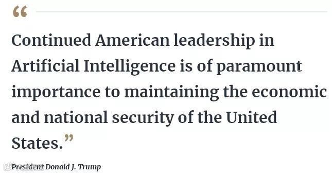 导读:2019年2月11日,美国总统特朗普签署行政命令,正式启动“美国人工智能计划(The American AI Initiative)”,全面促进美国人工智能技术发展。