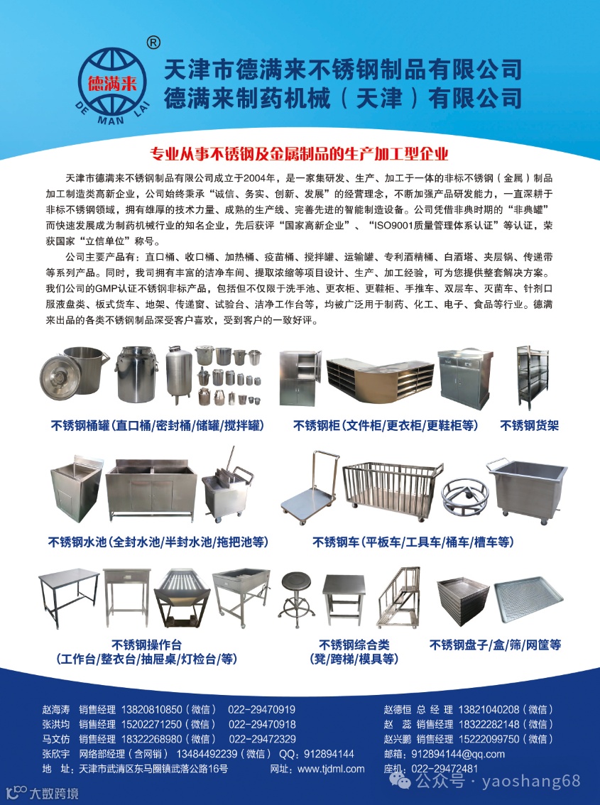 我们公司的GMP认证不锈钢非标产品,包括但不限于洗手池、更衣柜、更鞋柜、手推车、双层车、双层车、针剂口服务盘类、板式货车、地架、传送窗、试验台、洁净工作台等,均被广泛用于制药、化工、电子、食品等行业。德满来出品的各类不锈钢制品深受客户喜欢,受到客户的一致好评。
