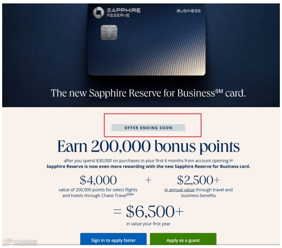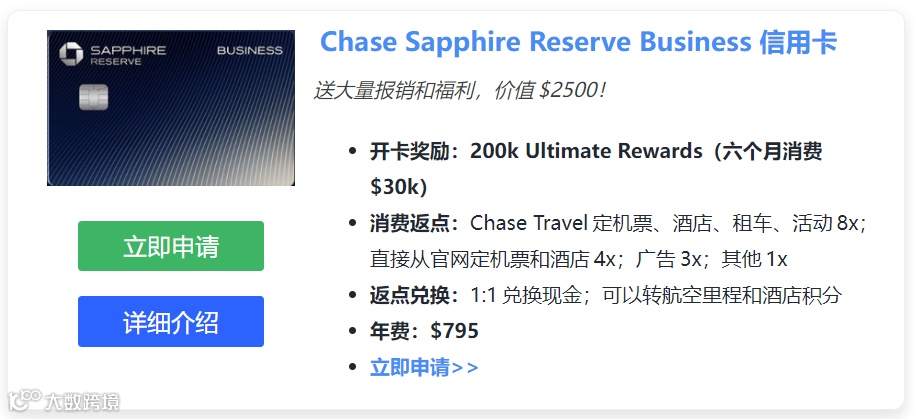 Chase Sapphire Reserve Business 卡:200,000积分开卡奖励限时开放