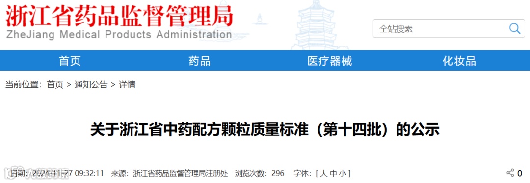 2024年11月27日,浙江药监局发布了中药配方颗粒质量标准(第十四批)公示,共涉及急性子、炒芥子(白芥)等16个品种,公示期为期15天。