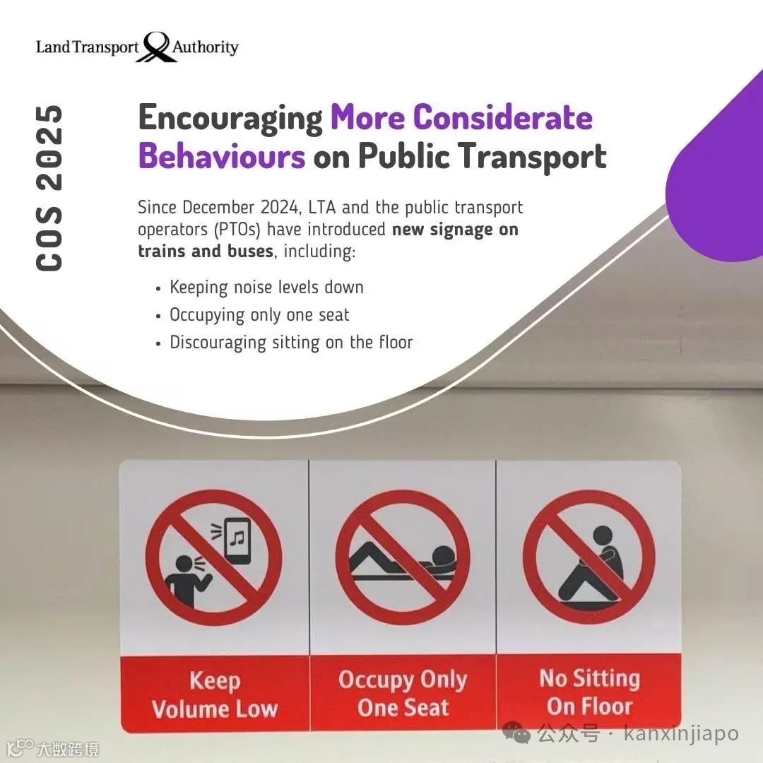 其实,新加坡陆交局于2019年在所有本地巴士上推出新告示,提醒乘客不要把脚放在座位上。