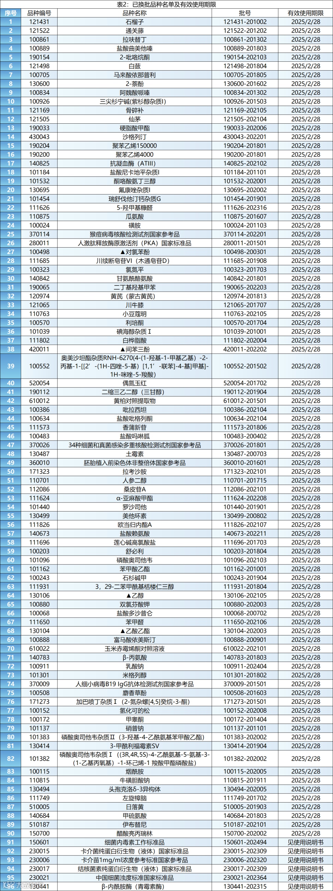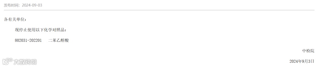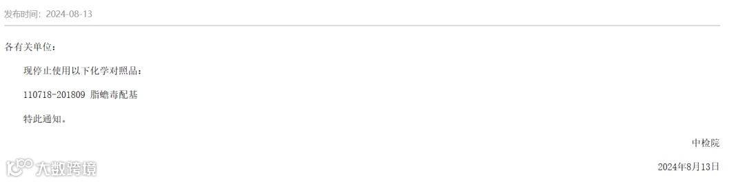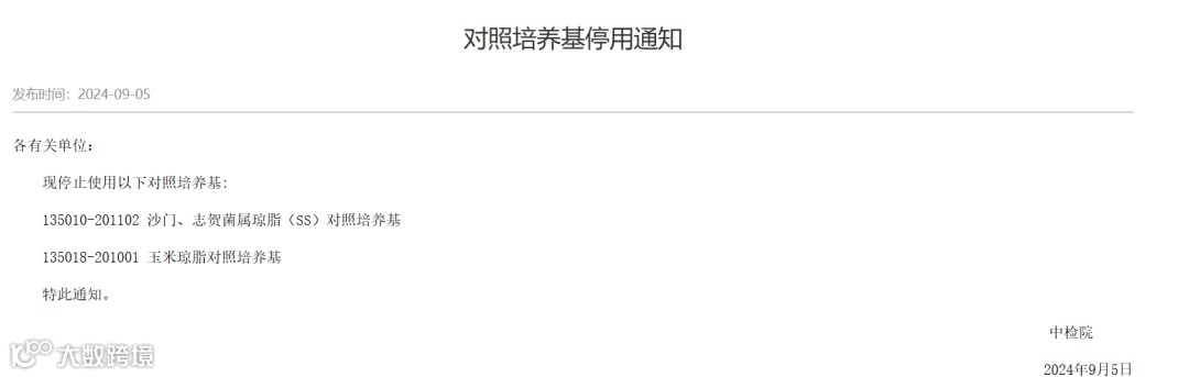 近期,中检院还发布了3个对照品和2个对照培养基的停用通知,具体如下: