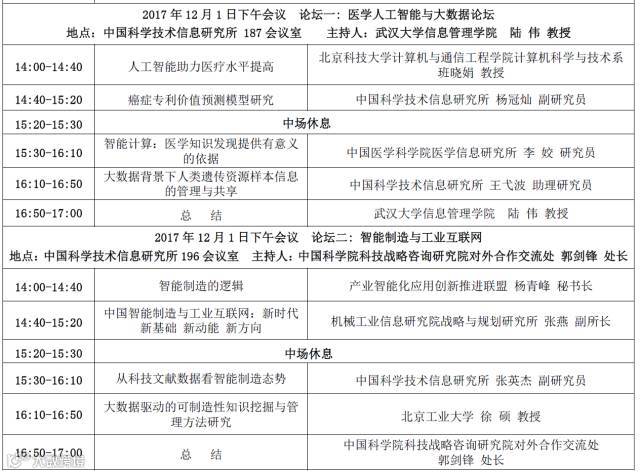 会议时间: 2017年12月1日(11月30日13:30-17:00在中国科学技术信息研究所主楼一层大厅报到。)