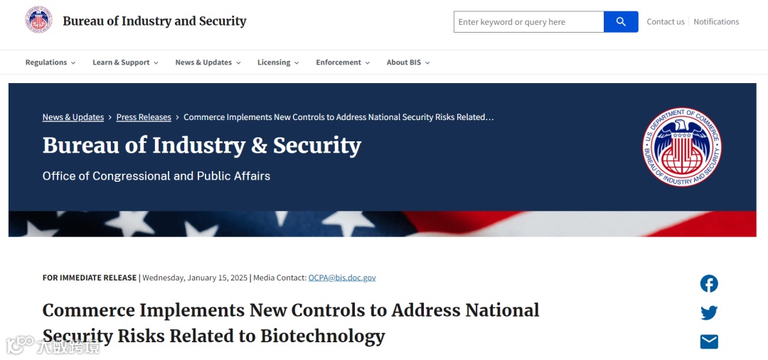 美国工业与安全局 (BIS) 通过一项临时最终规则 (IFR) 修订《出口管制条例》 (EAR),对某些实验室仪器实施有针对性的出口管制。美国认为,确保生物技术的负责任使用,尤其是在与人工智能(AI)和数据科学相结合的情况下,对于保障公共卫生、农业和食品生产以及环境至关重要。