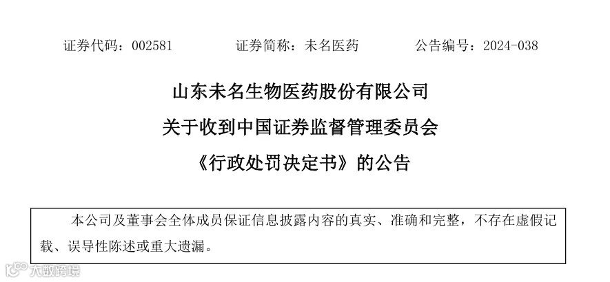 对山东未名生物医药股份有限公司责令改正,给予警告,并处以60万元罚款。