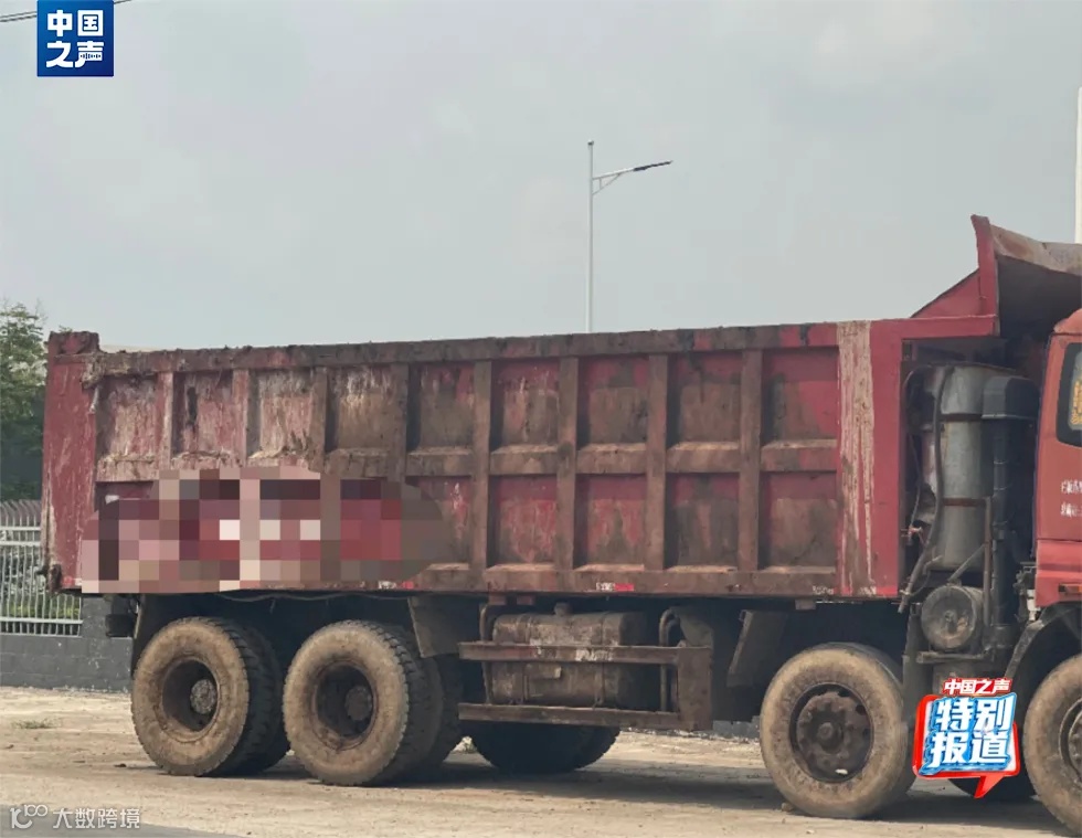 △在无极县运输污泥的卡车(江晓晨/摄)