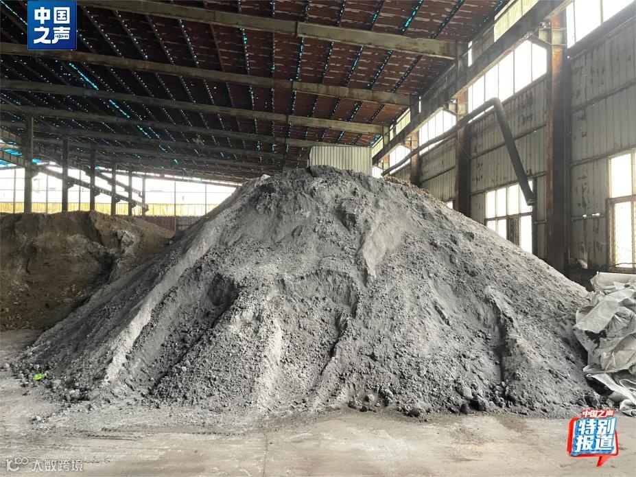 厂房里堆满了多种原材料,其中一种黑灰色土块引起记者的注意。马先生称这是晒干后结成渣的污泥,但对其具体成分却避而不谈。