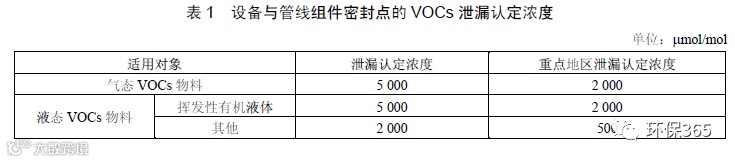b)设备与管线组件密封点的VOCs泄漏检测值超过表1规定的泄漏认定浓度。