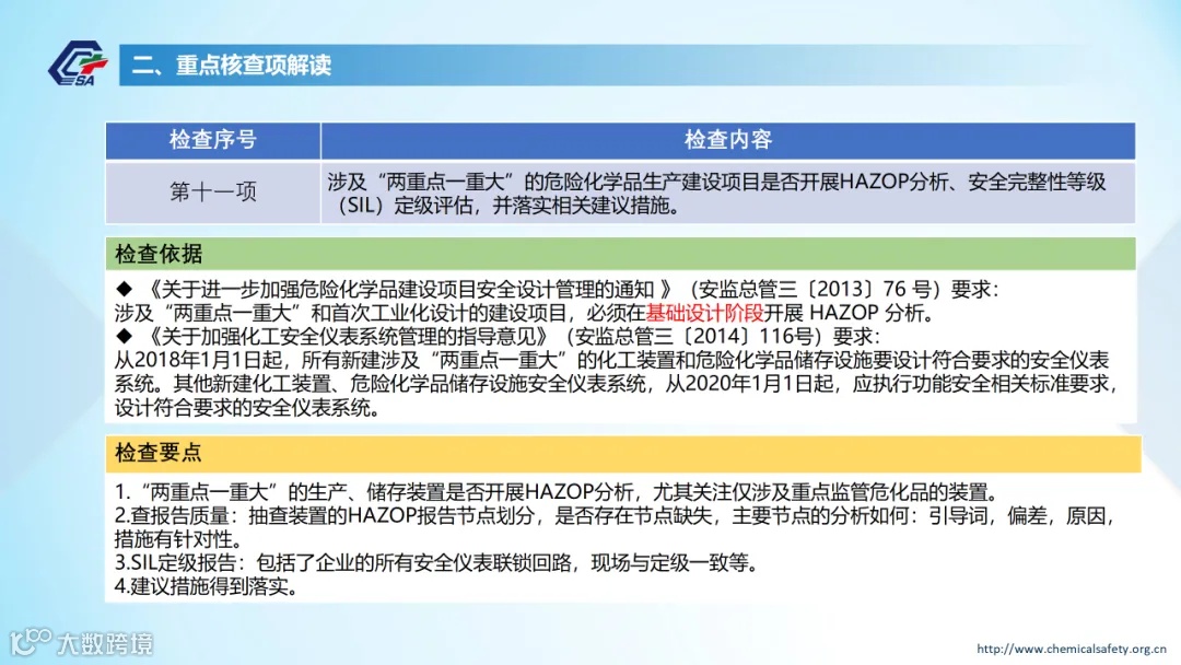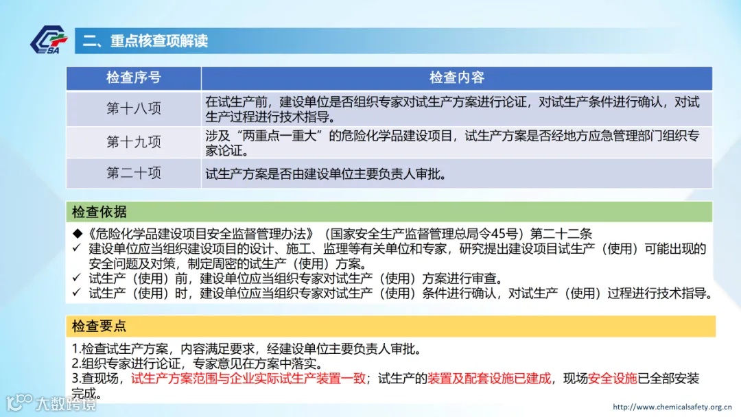 危化品生产建设项目安全设施“三同时”和试生产方案重点内容核查表解读