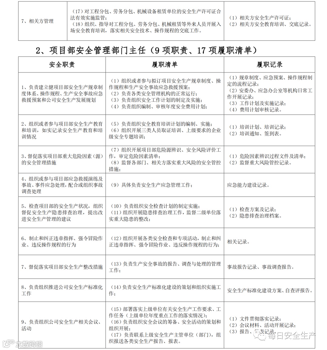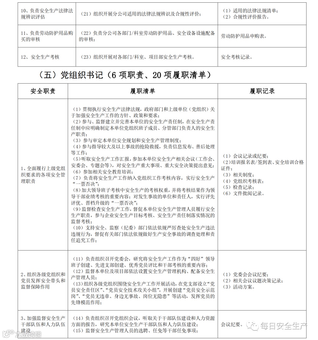 五、生产经营单位安全生产管理机构、安全生产管理人员安全生产责任清单【15条】