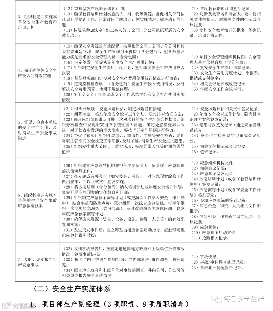 三、生产经营单位安全生产分管负责人(安全总监)安全生产责任清单【15条】
