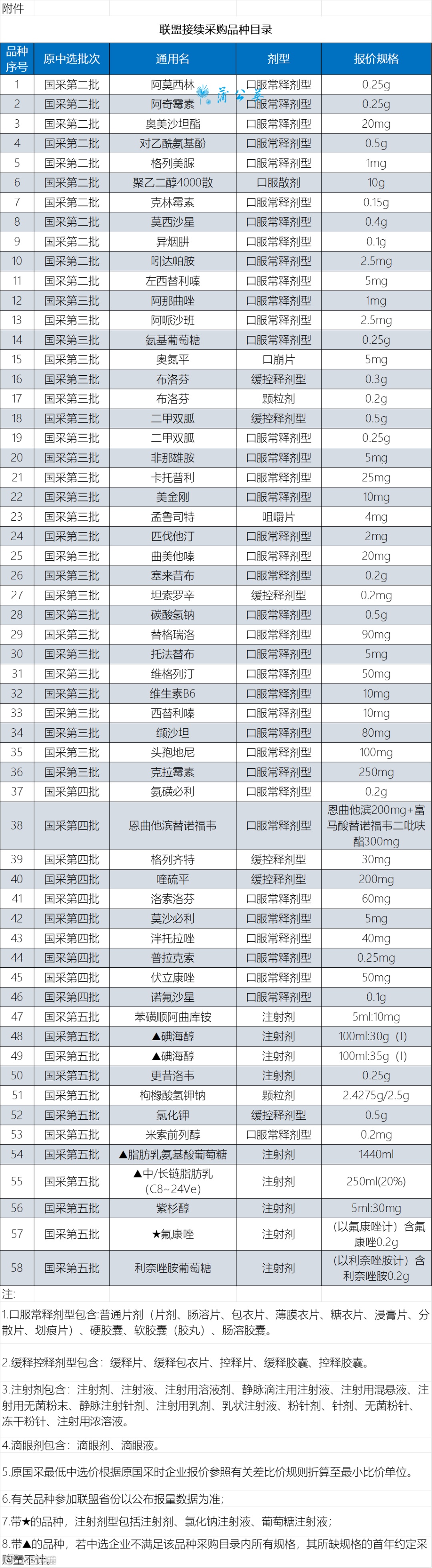 本次共涉及58个品规。