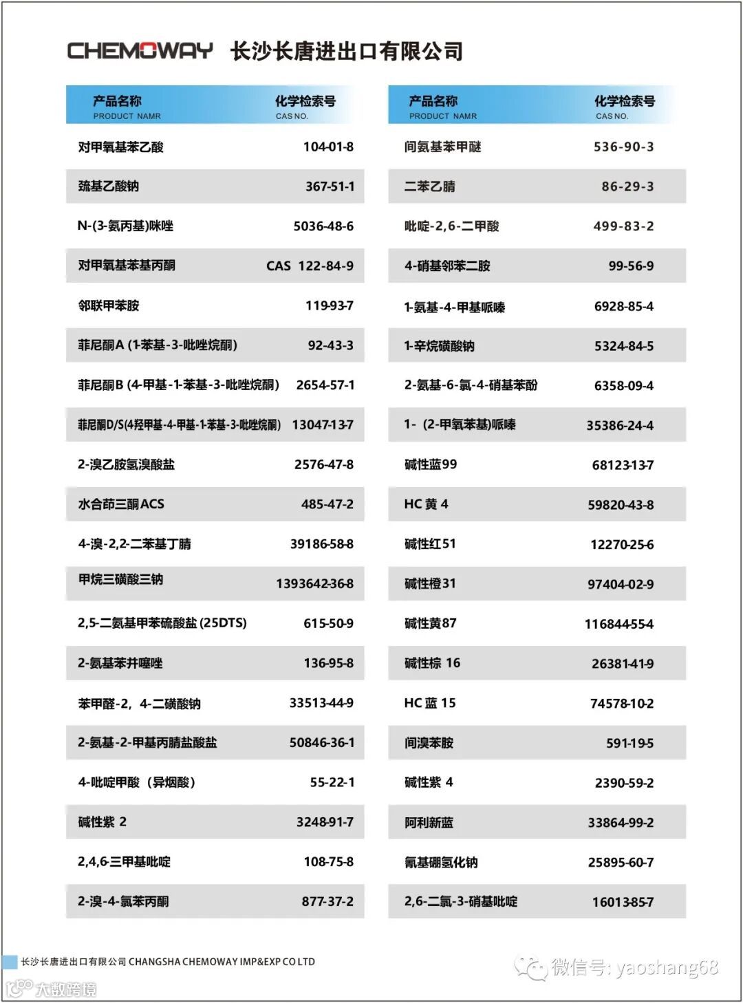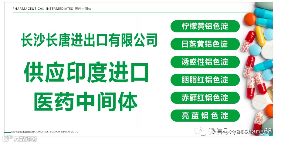 长唐进出口有限公司位于湖南省长沙市雨花区国际创新城18栋,公司专注于精细化学品的进出口,有危险品化学品经营许可证,具有丰富的危险品操作经验,专业供应印度进口医药中间体,农药中间体,毛发染色中间体、染料中间体,颜料中间体,化学试剂以及其它精细化学品!