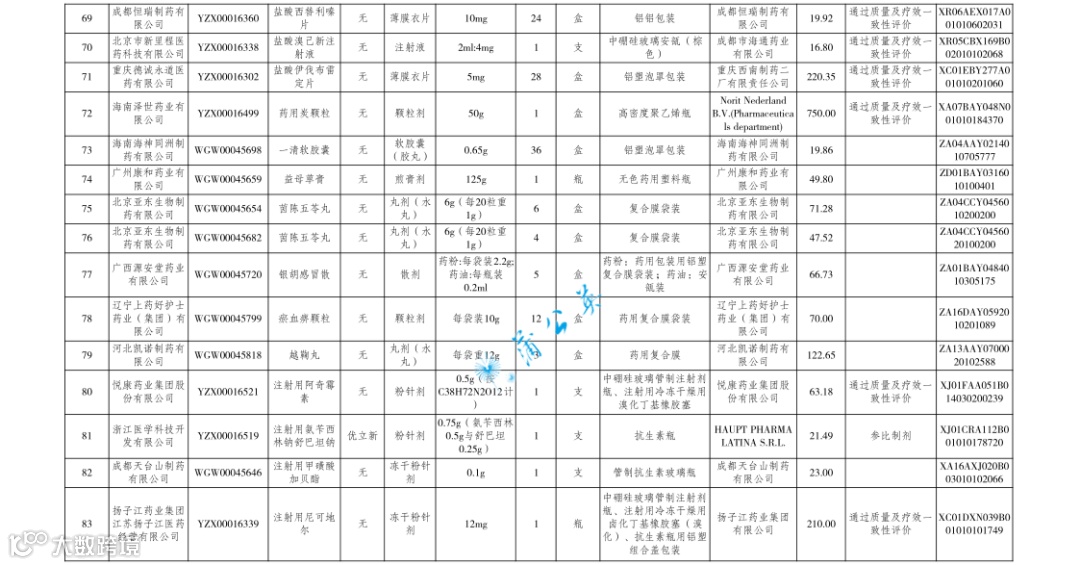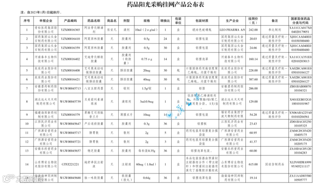 药品阳光采购挂网产品公布表
