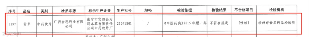 本次不合品种均为中药饮片,其中有3批次不合格饮片显示来源于湖北道地药材科技有限公司,但企业声明未生产过该抽检产品。