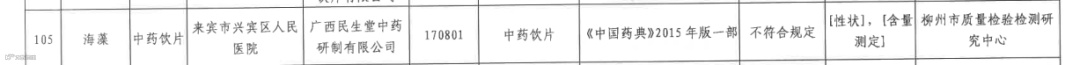 1、标示安国市深豪药业有限公司生产的防己(批号C149211001)经沧州市食品药品检验所检验,【性状】项不符合规定(被抽样单位为沧州市南皮阳光医院)。