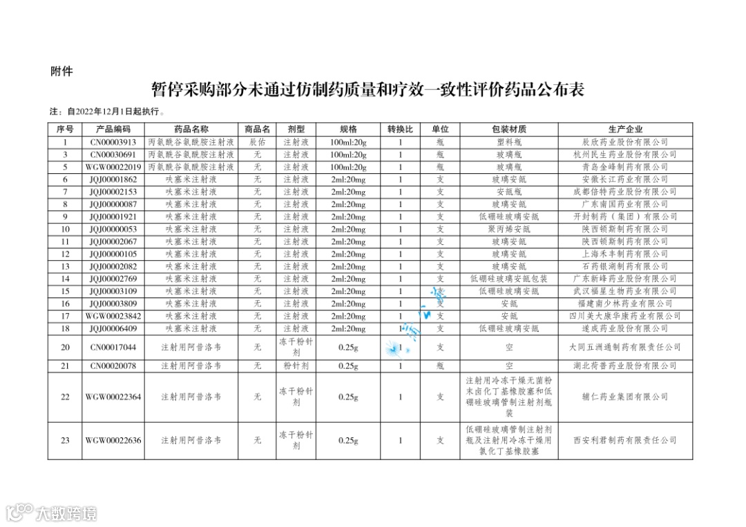 未通过一致性评价、66个文号暂停采购,12月1日执行!
