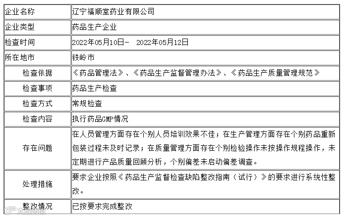 2022年08月08日,辽宁药监局发布生产企业检查公示,共计2家药品生产企业接受检查,发现缺陷8条,其中培训效果不佳被频繁提及。