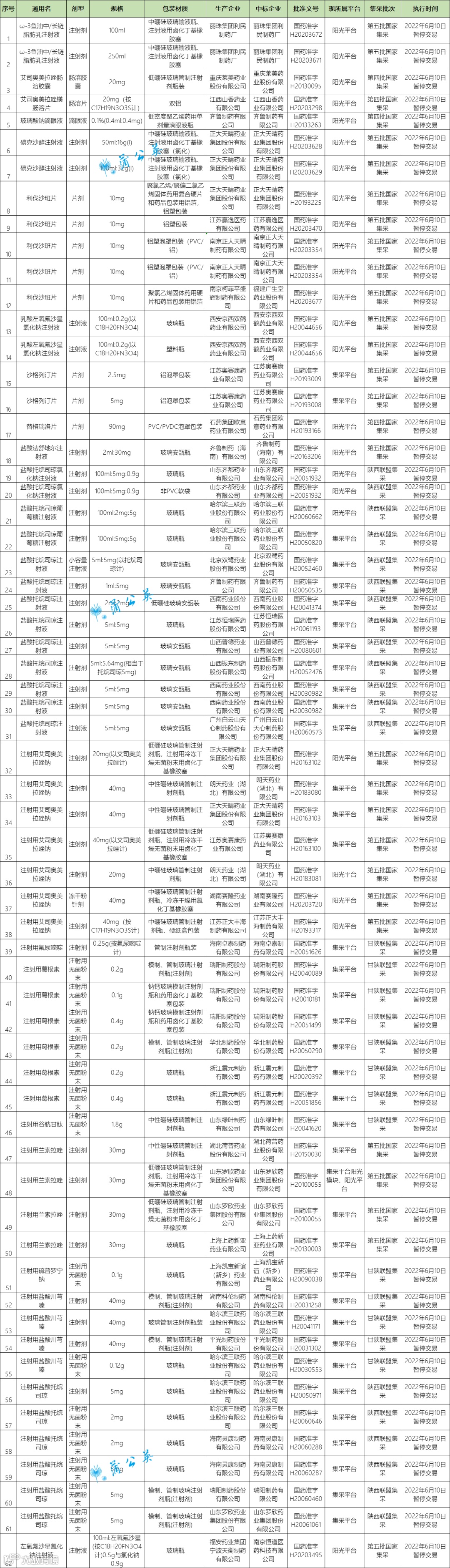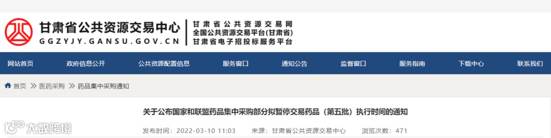 导读:2022年03月10日,甘肃公共资源中心发布通知,共计26家生产企业的62个品种于2022年06月10日起暂