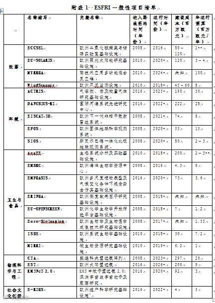 战略工作组负责评估2006年 ESFRI 路线图中所有项目的实施情况,实施工作组负责评估2008、2010年 ESFRI 路线图中项目的实施情况。根据对以往路线图中项目的评估结果,再加上新提交项目的评估结果,确定了2016年路线图中的项目清单:21个一般性项目和29个已实施项目。