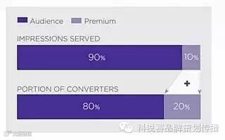 90%的广告曝光量大量投注在audience targeting,并保留10%的广告曝光量于优质广告环境,这将创造更高的点选率,20%的点选是由这10%的广告产生。